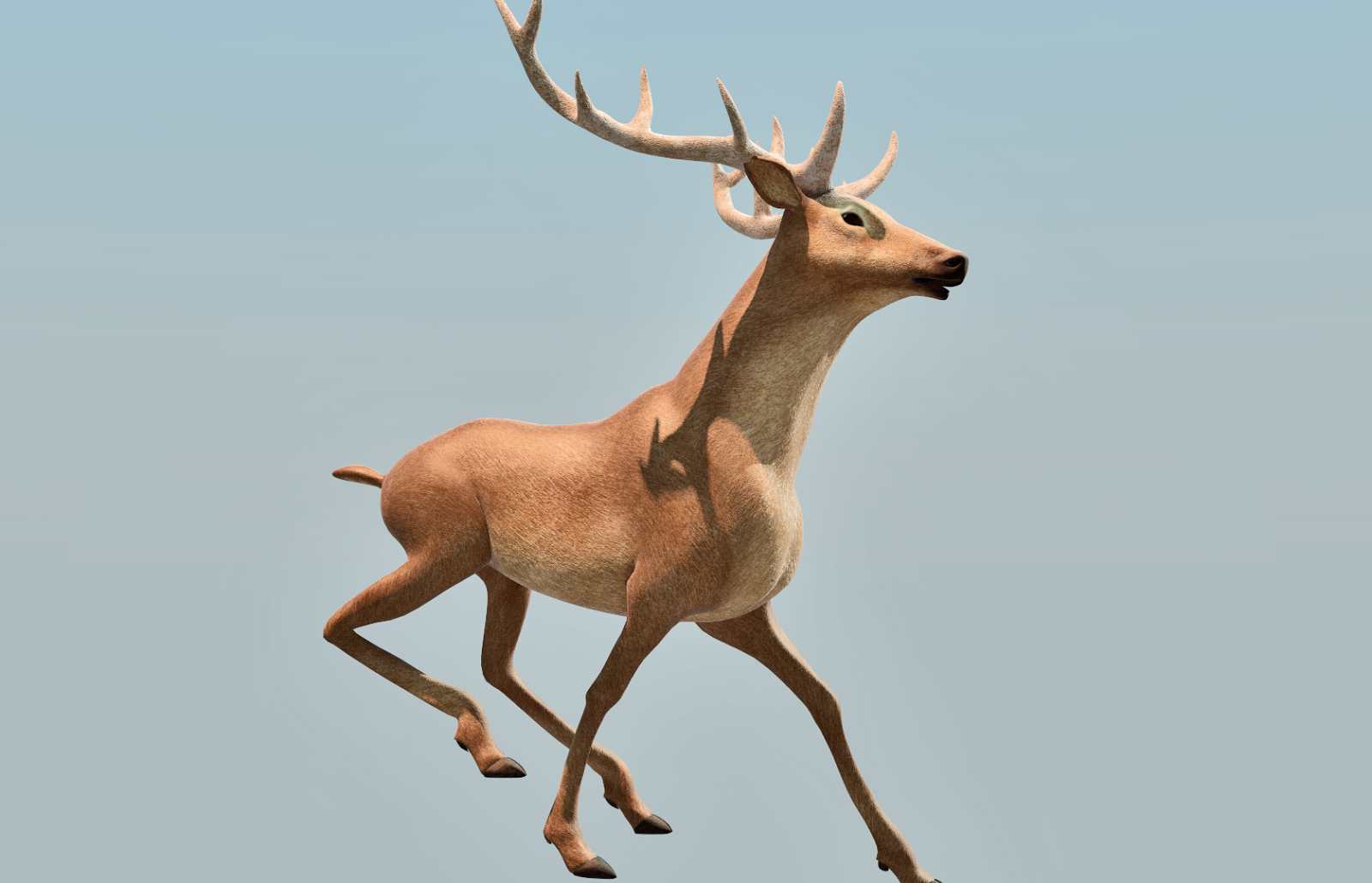 The Deer with the final rendering - Max / Mari / Nuke Fur only on belly, in ears and tail - Hair Farm |